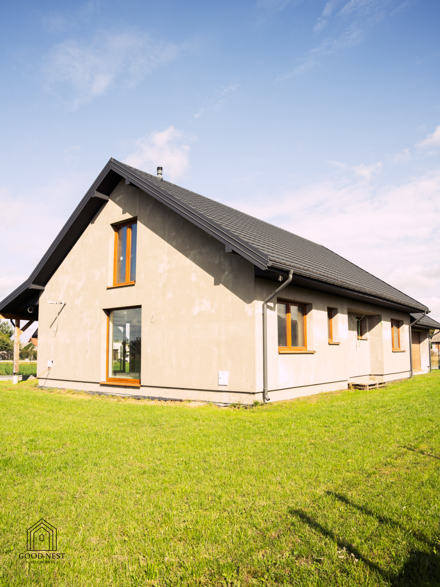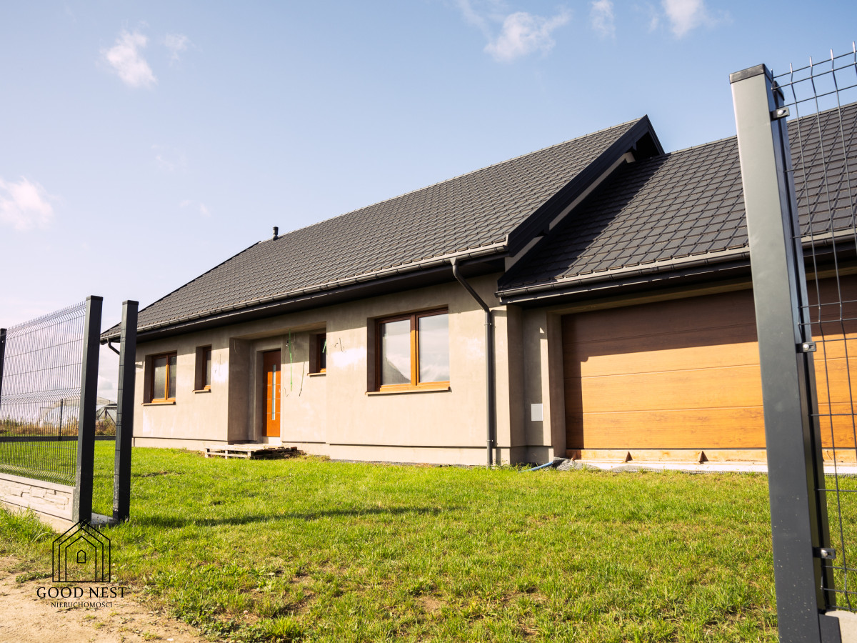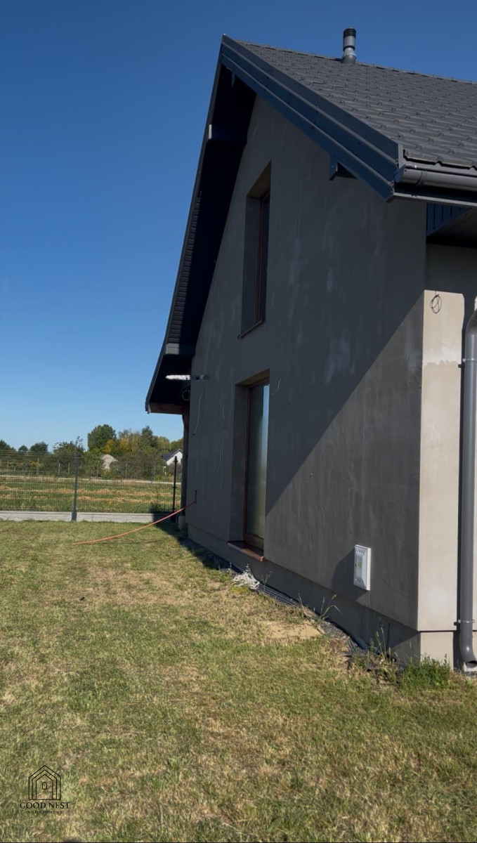 Dom posadowiony jest na dużej, słonecznej działce o powierzchni 800 m², która daje wiele możliwości aranżacji ogrodu. Właściciel domu zadbał o trawę, dzięki której już od pierwszych dni będziesz cieszyć się z estetycznego otoczenia domu. Nieruchomość została ogrodzona a niebawem zostanie położona kostka na podjeździe do garażu z dodatkowym miejscem na parkowanie samochodu, pas od furtki do drzwi wejściowych oraz pod miejsce na altanę śmietnikową. Nad miejscem pod taras zbudowano drewniany dach.