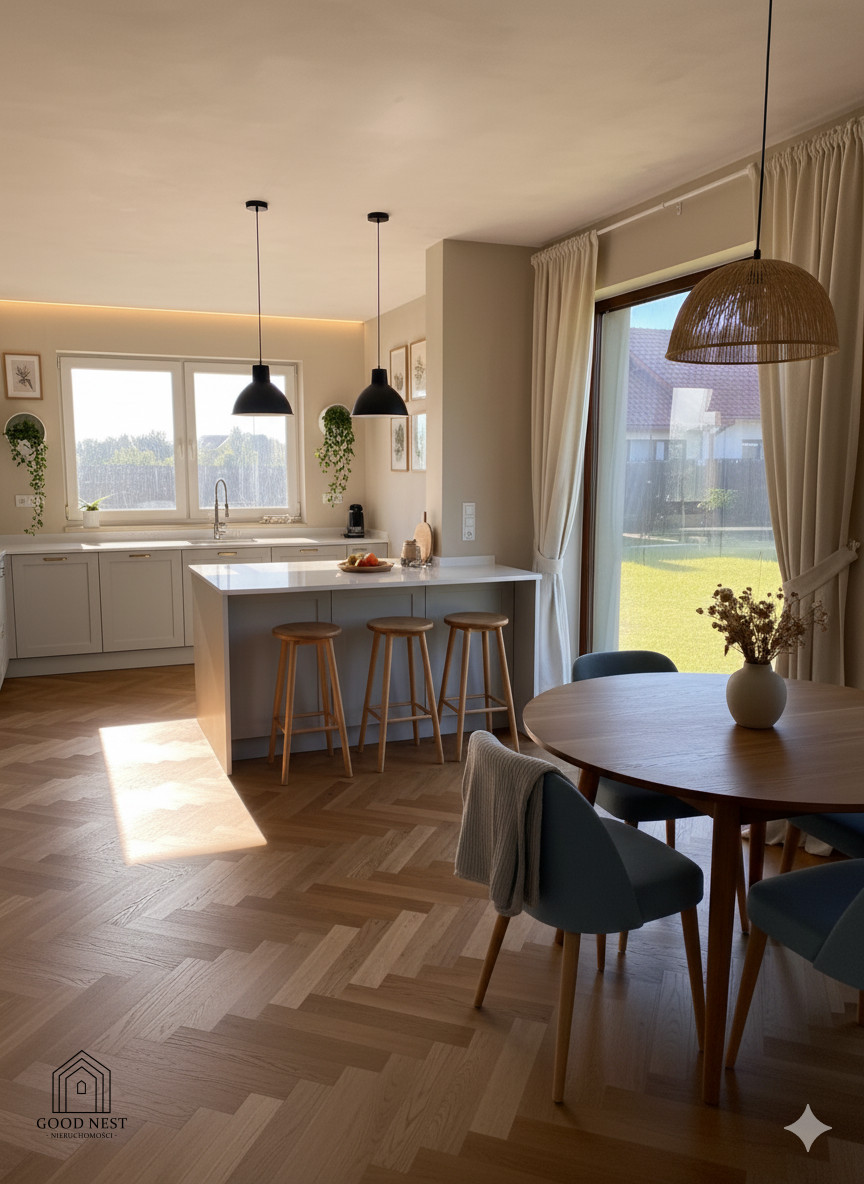 położonego w cichej i spokojnej okolicy, zaledwie 2 km od Mińska Mazowieckiego. Dom został zaprojektowany z myślą o wygodzie i funkcjonalności, a jego zaawansowany stan deweloperski pozwala na szybkie i komfortowe wykończenie wnętrz według własnego gustu.