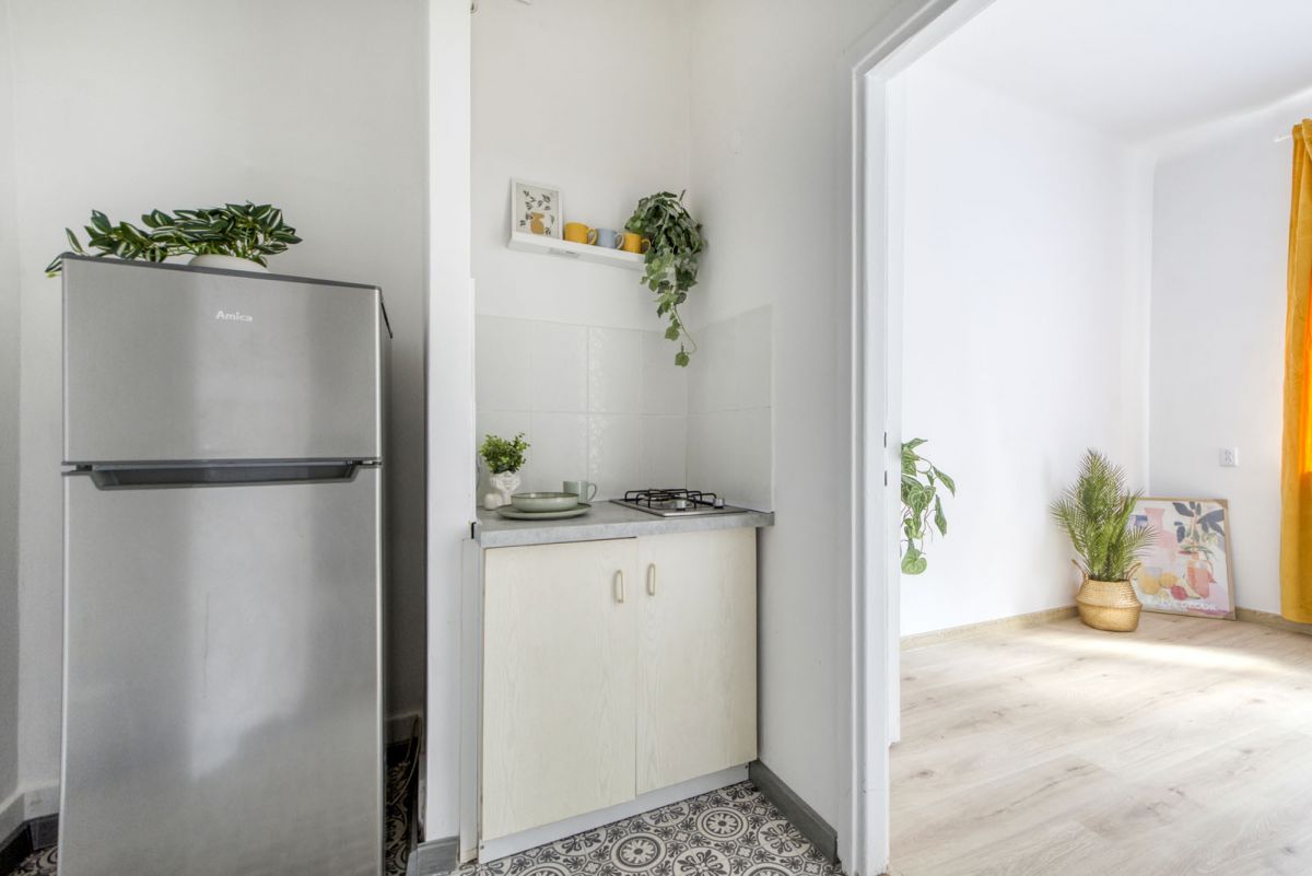 Do mieszkania wchodzi się z zamykanego przedsionka, który stanowi część wspólną dla jeszcze jednego lokalu.