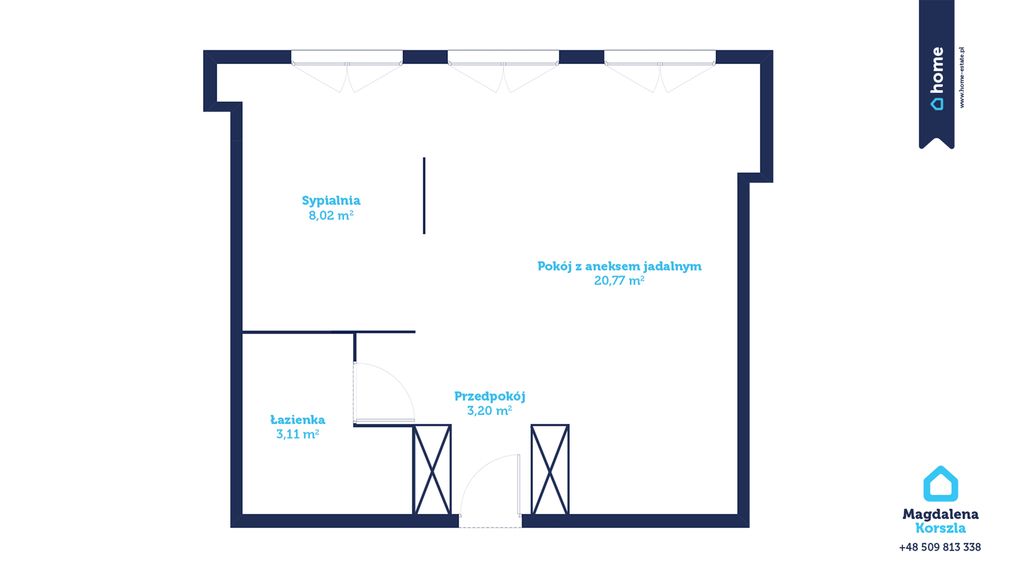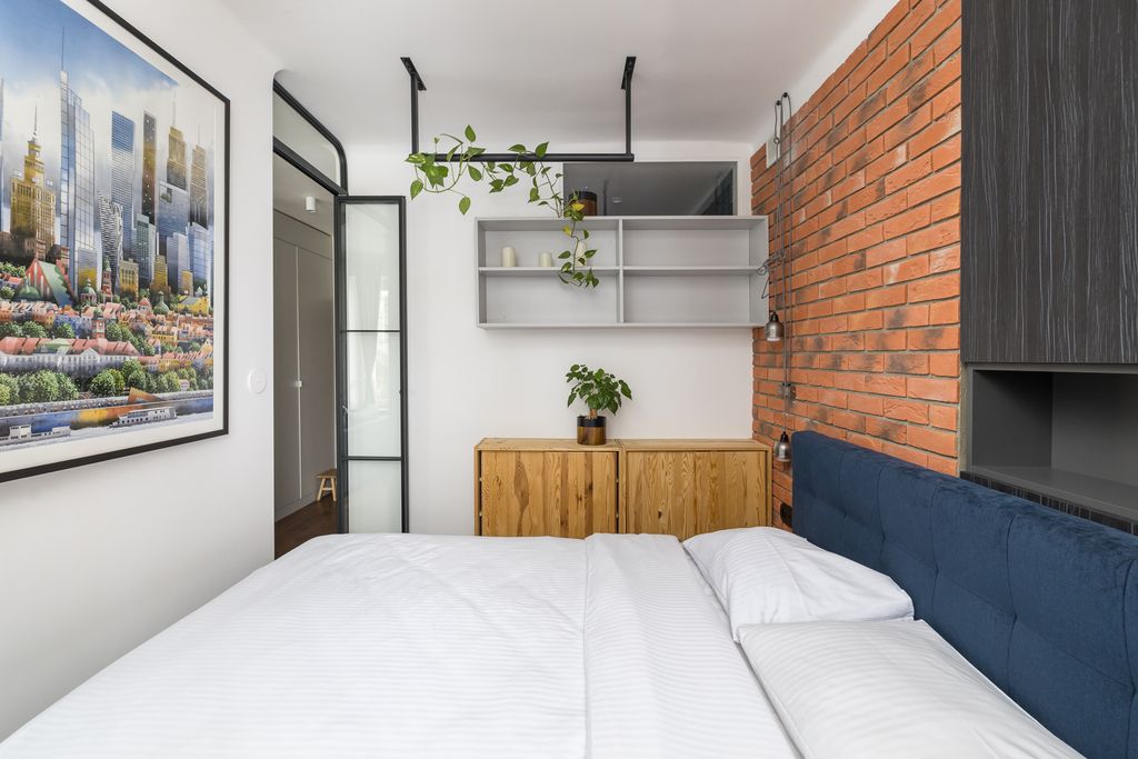 Mieszkanie wykończone z wysokiej jakości materiałów – dębowa podłoga, parapety i blaty, cegła dekoracyjna w sypialni, meble na wymiar oraz inteligentne oświetlenie Philips Hue. Wymienione wszystkie instalacje, nowe drzwi wejściowe z zamkiem TEDE (Dierre).