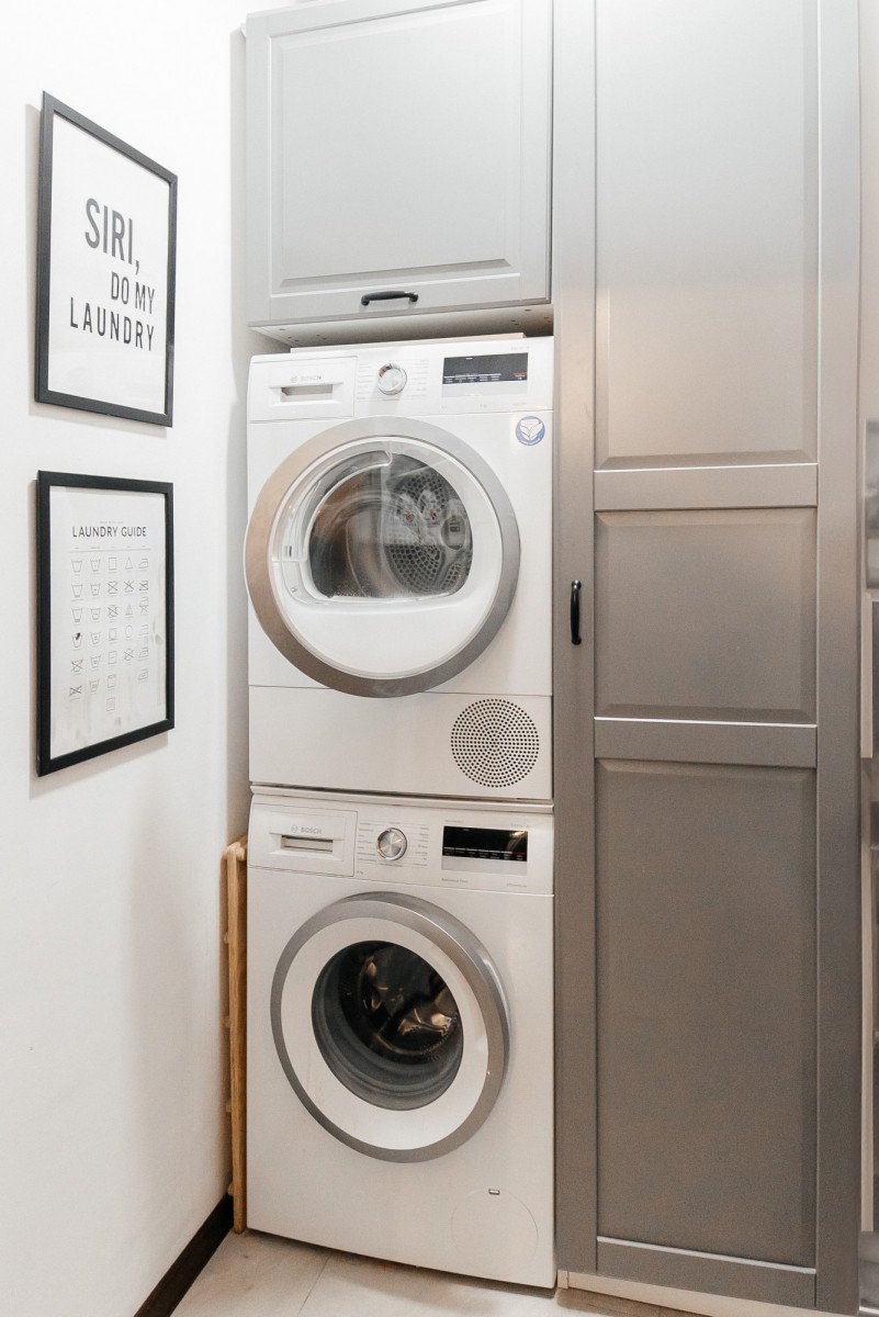 - Osobna pralnia i suszarnia — rozwiązanie, które naprawdę docenia się przy dzieciach.