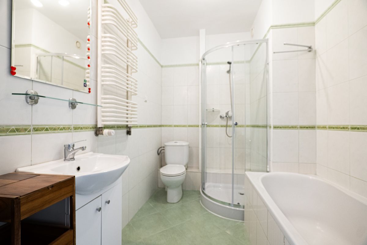 • Rozkład pomieszczeń: apartament składa się z otwartej powierzchni: salonu i części kuchennej, oddzielnej, kameralnej sypialni oraz przestronnej łazienki. Wszystkie te pomieszczenia zostały odświeżonei pomalowne, co pozwoli najemcy cieszyć się w pełni ich funkcjonalnością