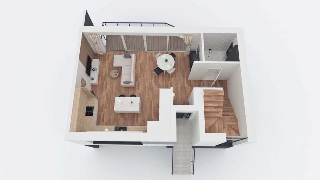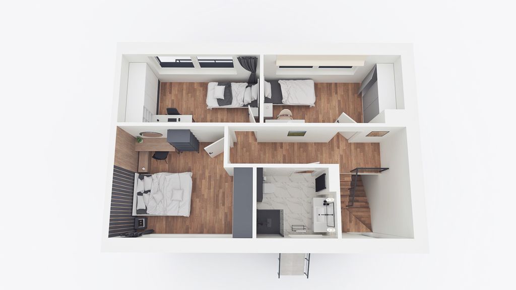 Przemyślany układ pomieszczeń zapewnia funkcjonalność, prywatność i wygodę życia rodzinnego.