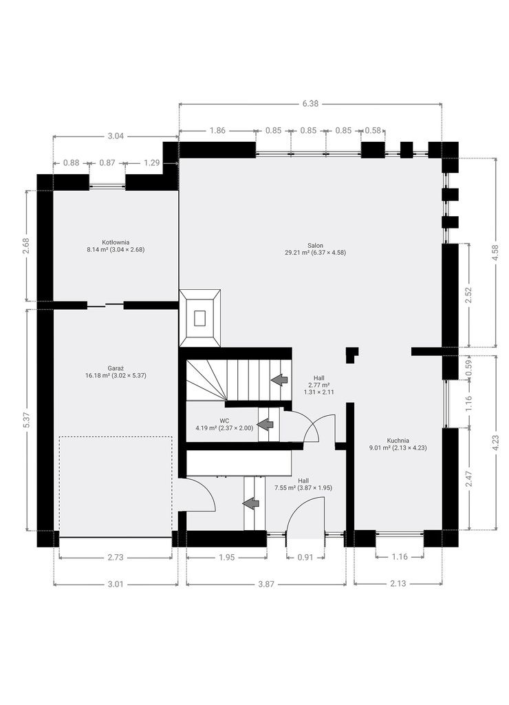 Nieruchomość oferuje wygodny układ dla rodziny: przestronny salon z kominkiem i wyjściem na słoneczny ogród (ekspozycja południowa), częściowo otwartą kuchnię oraz aż 4 sypialnie na piętrze. Dodatkowym atutem jest garderoba, duża łazienka oraz garaż w bryle budynku.