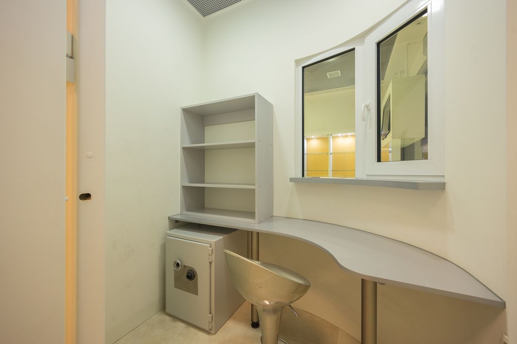 - kantor z szybami i drzwiami pancernymi (2.8m2).