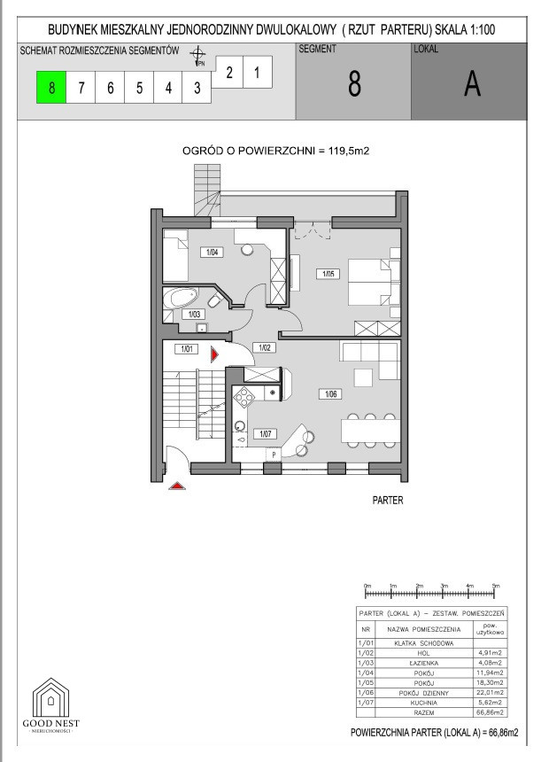 Prezentujemy wyjątkowe mieszkanie 3-pokojowe na parterze, które łączy funkcjonalność mieszkania z komfortem domu.