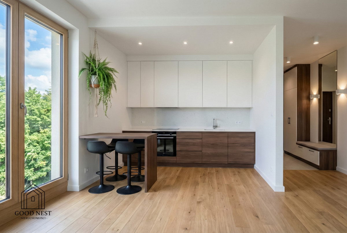 Kuchnia: Aneks kuchenny z oknem, otwarty na przestronny salon.