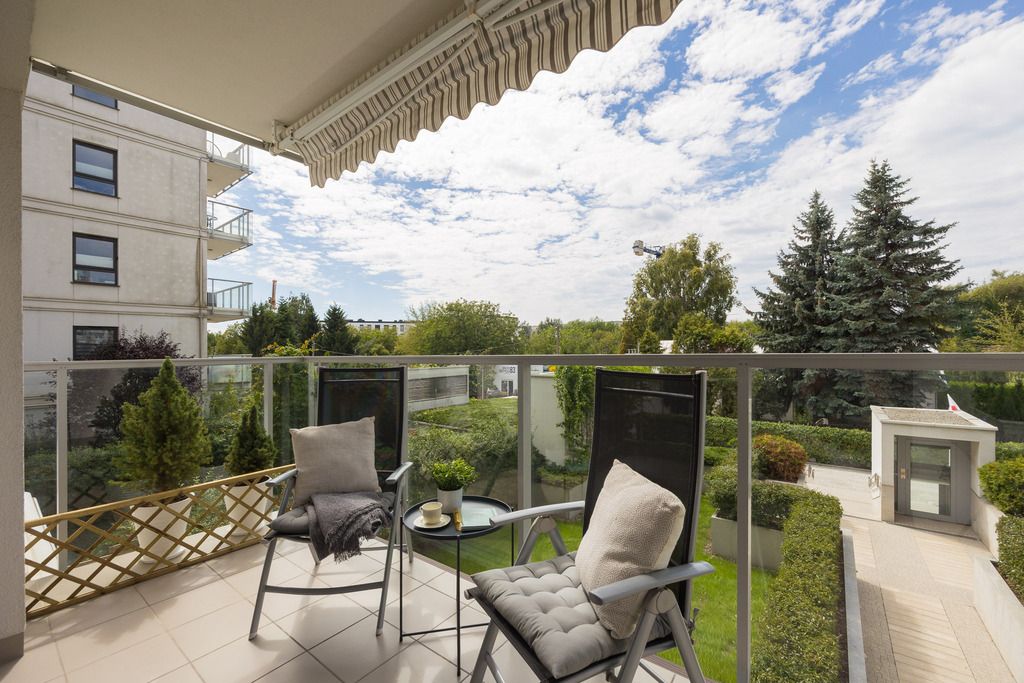 A spacious apartment with a balcony in a well-maintained neighborhood in a green part of Mokotów at 71 Bartycka Street. Beautiful view from the balcony. A very well-maintained neighborhood with plenty of parking spaces for guests.