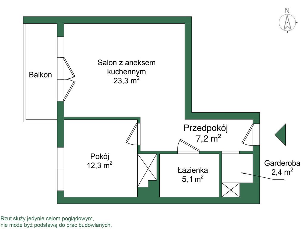 - salon z aneksem kuchennym (23,3 m2),