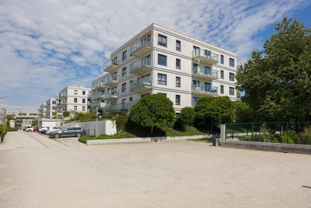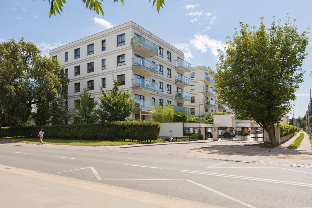 Nearby sports infrastructure includes running/walking paths, a beach, sports fields, restaurants, and public transport stops. The Czerniakowski Lake Reserve is within walking distance. A quiet and peaceful neighborhood dominated by modern architecture.