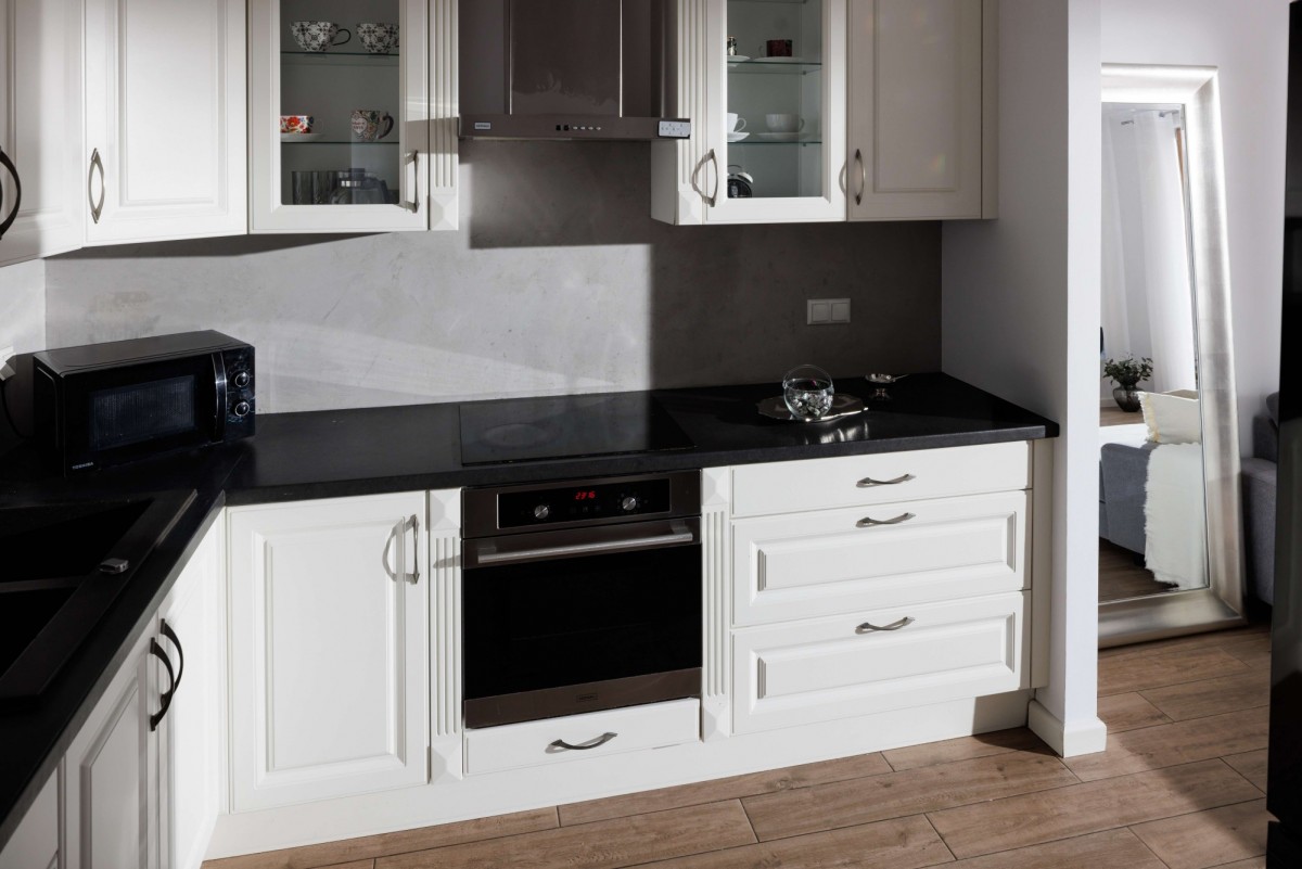 - kuchni otwartej na salon oraz korytarz, wyposażonej w pełen pakiet AGD,
