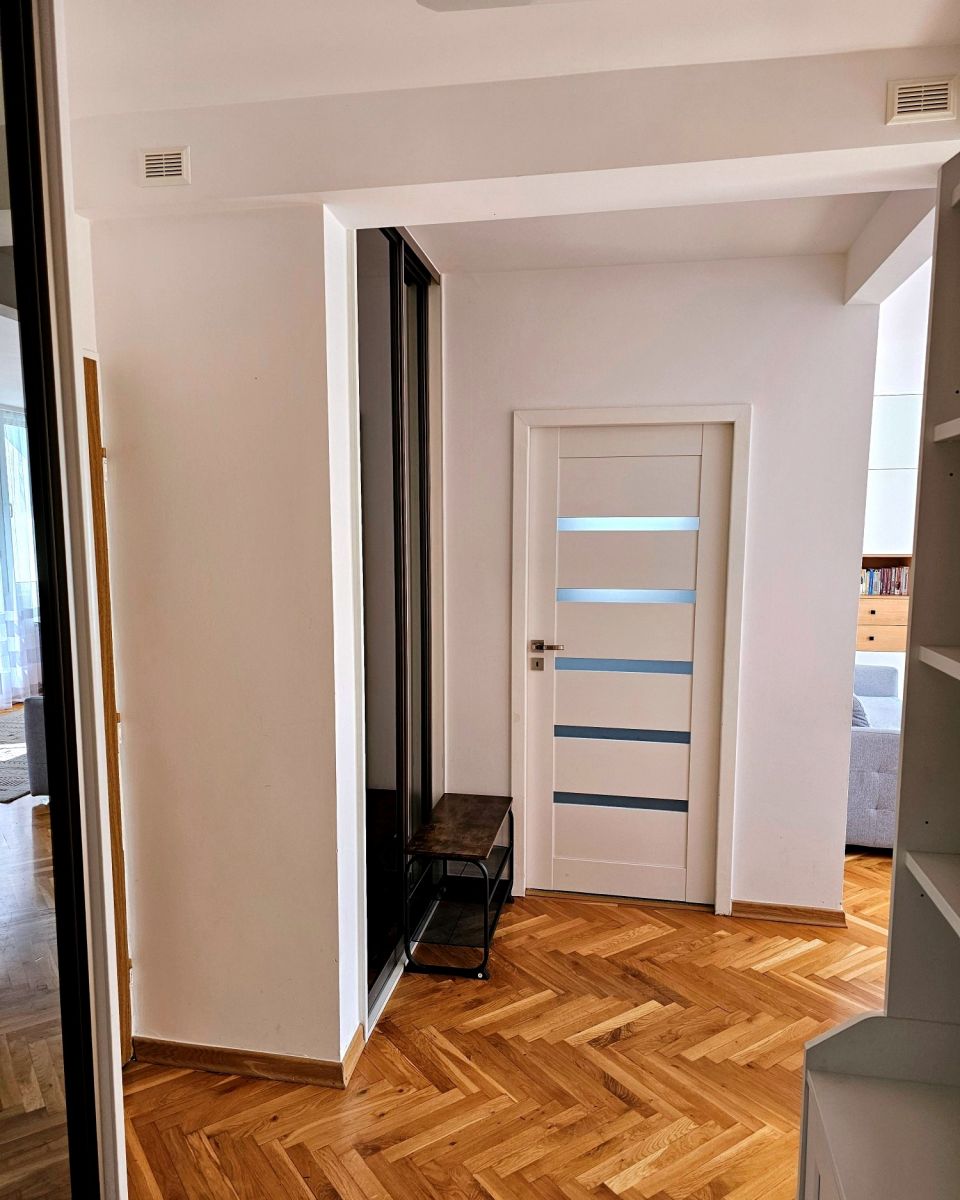 Lokal składa się z jasnego i przestronnego salonu, dwóch niezależnych sypialni, kuchni, łazienki z WC oraz doskonale wykorzystanej komunikacji, gdzie znajdują się dwie szafy typu komandor.