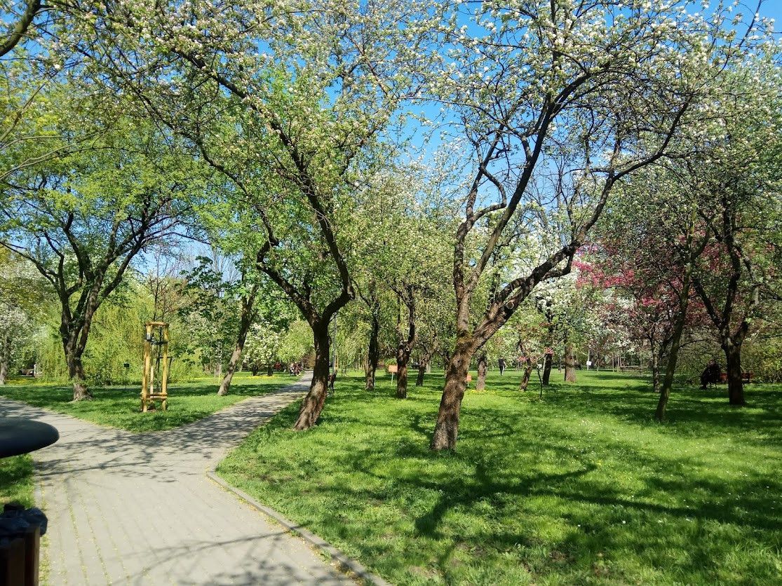 parku Sady Żoliborskie, z kojącym widokiem na zieleń.