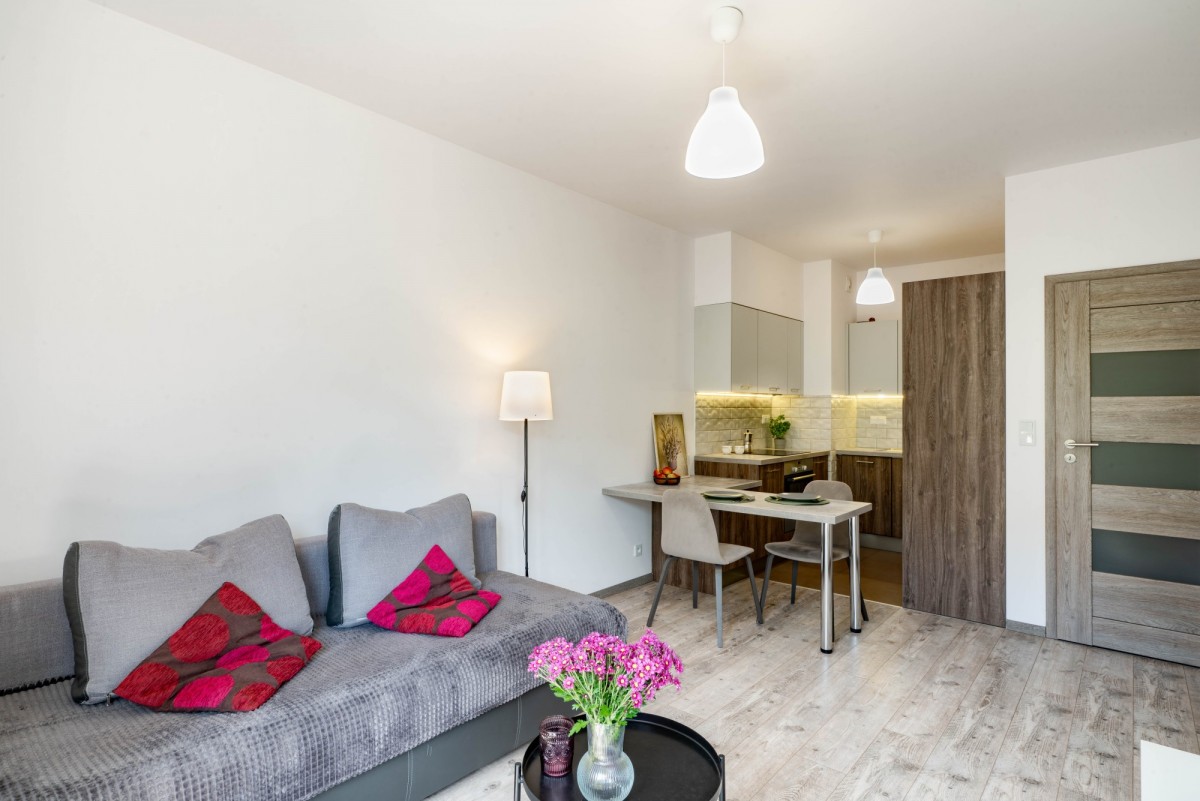 - Mieszkanie umeblowane i w pełni wyposażone w AGD: lodówka, piekarnik, płyta, zmywarka, pralka