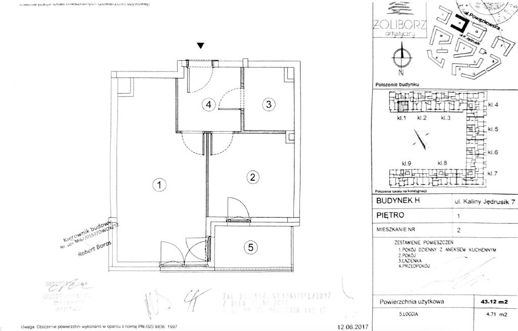 Nowoczesne, słoneczne 2‑pokojowe mieszkanie o powierzchni 43,12 m² położone na 1 piętrze w 7‑piętrowym budynku z 2017 roku, w prestiżowej inwestycji Dom Development - Żoliborz Artystyczny.