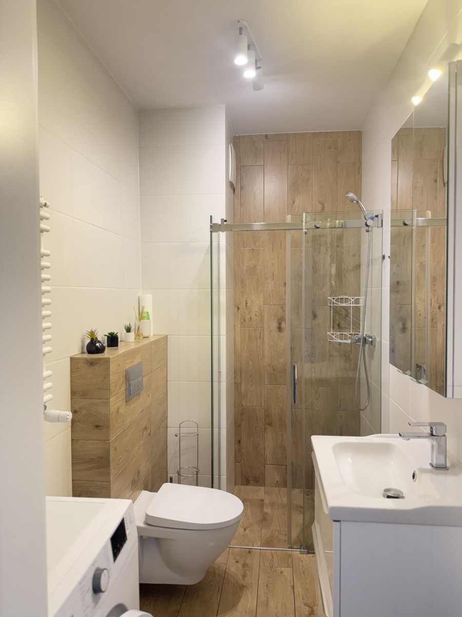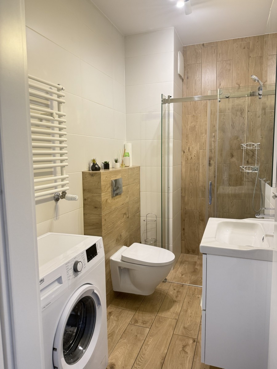 - Kuchnia wyposażona w pełne AGD (lodówka, zmywarka, płyta indukcyjna)