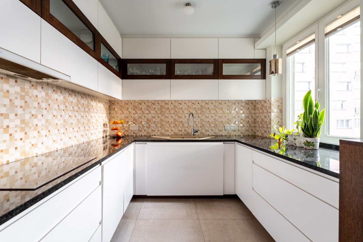 Apartament wyróżnia się wysoką jakością wykończenia oraz dbałością o detale. Wnętrze zostało wykończone z użyciem starannie dobranych, wysokiej klasy materiałów, takie jak kamienne blaty, drewniane okna oraz meble wykonane na zamówienie, które nadają wnętrzu ponadczasowej elegancji. Uzupełnieniem są dekoracyjne, materiałowe tapety oraz starannie dobrane elementy wyposażenia.