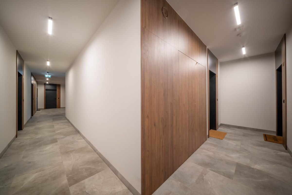 The building is modern, equipped with an elevator and well-maintained common areas. A quiet neighborhood with excellent infrastructure — shops, service points, and convenient public transport nearby.
